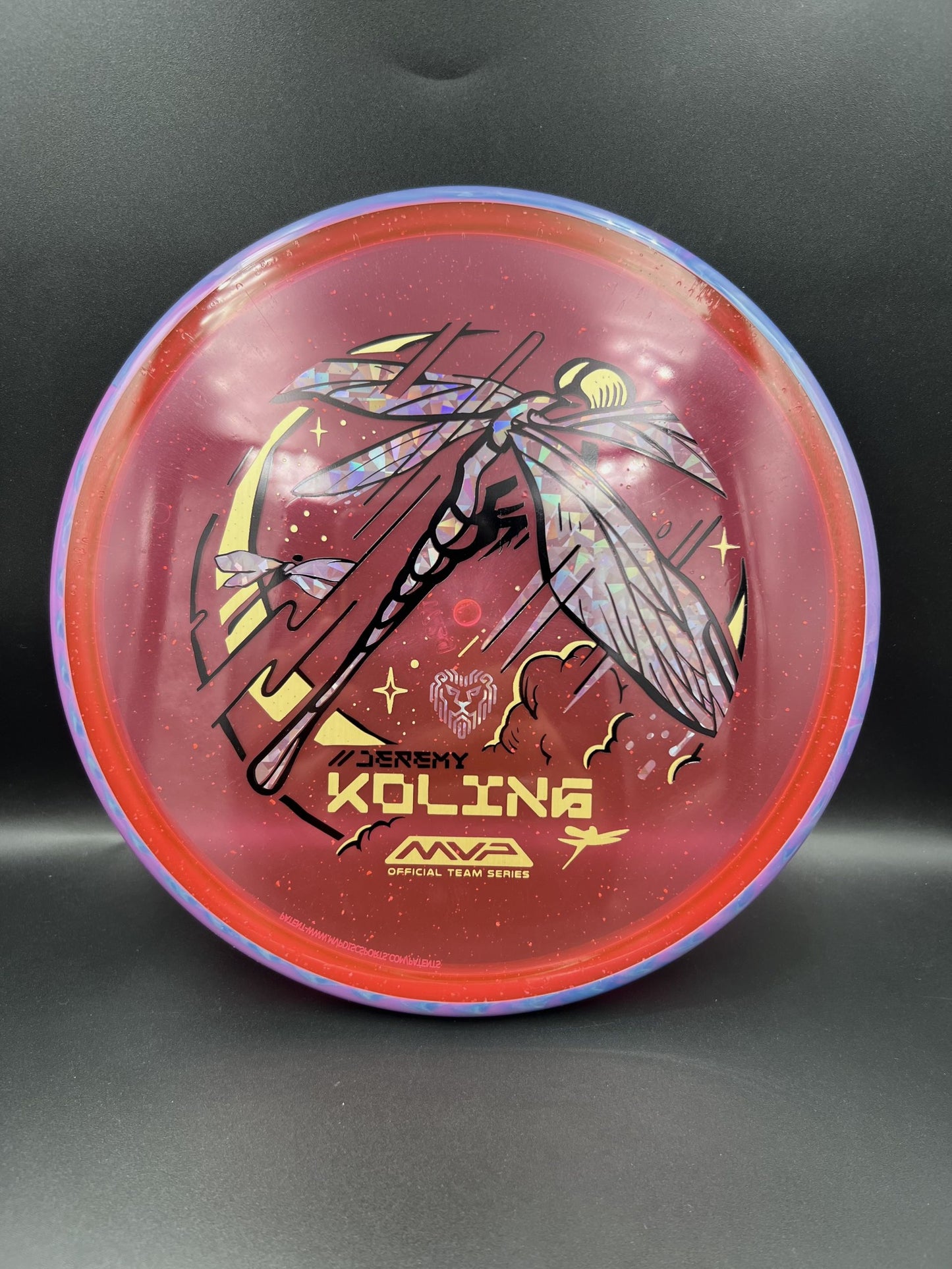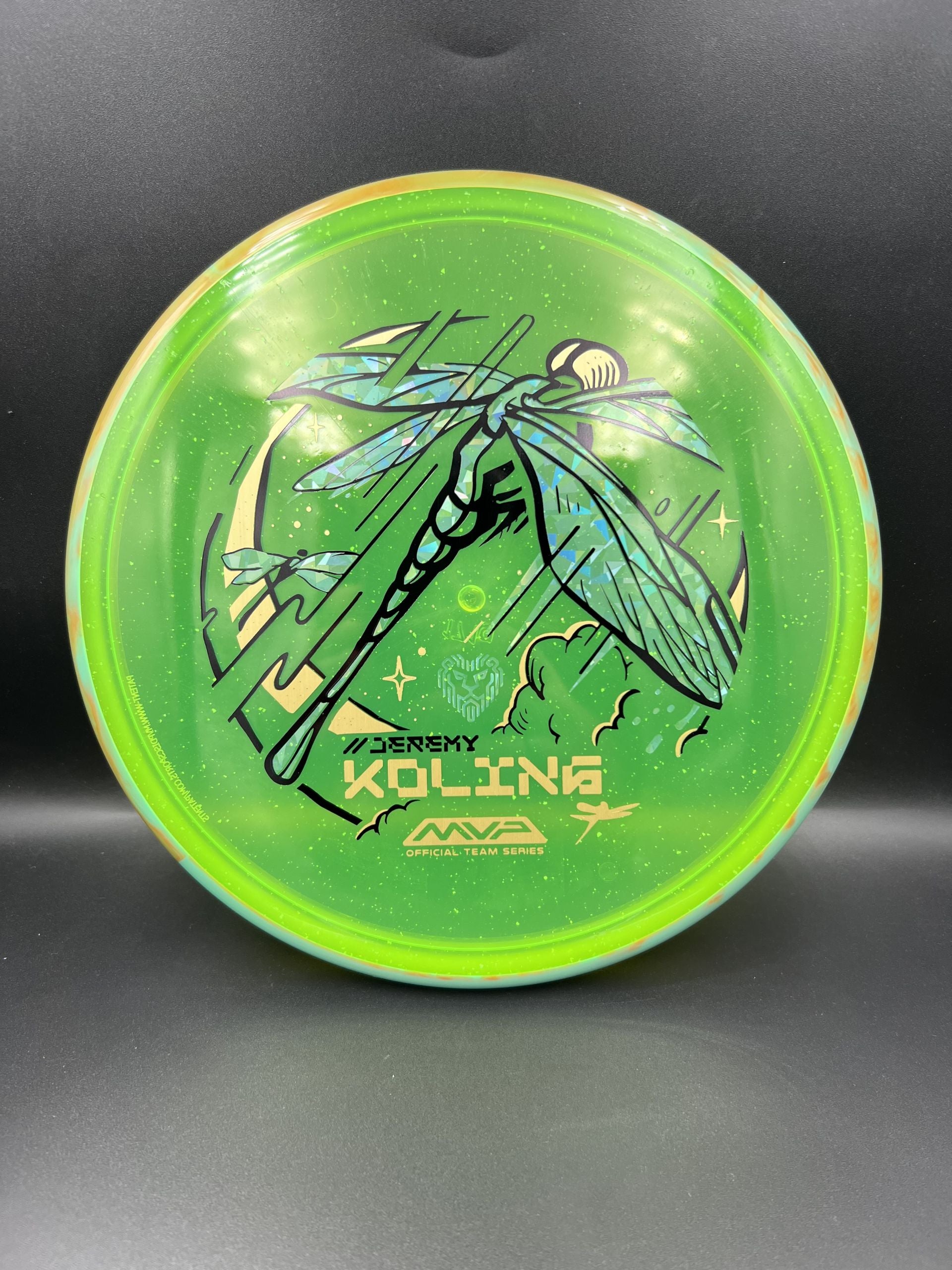 Jeremy’s Team Series Dragonfly features a triple-foil design beautifully brought to life by Mike Inscho. For his first official stamp with MVP, Jeremy wanted to choose something that was close to his heart, and dragonflies are something that have become quite special to Big Jerm - the result is another Mike Inscho home run. As his preferred forehand approach disc, the Tempo was chosen for its low profile, flat flight plate, and predictable amount of turn before its reliable fade at the end of its flight - a dependable, torque resistant approach disc for the forehand specialist himself. With flight numbers of 4 | 4 | 0 | 2.5, the Tempo will get your approach game up to speed too! Glow The Sport with the official release of Particle Glow Proton, and welcome Jeremy Koling to Team MVP by grabbing your own Big Jerm Team Series Tempo!