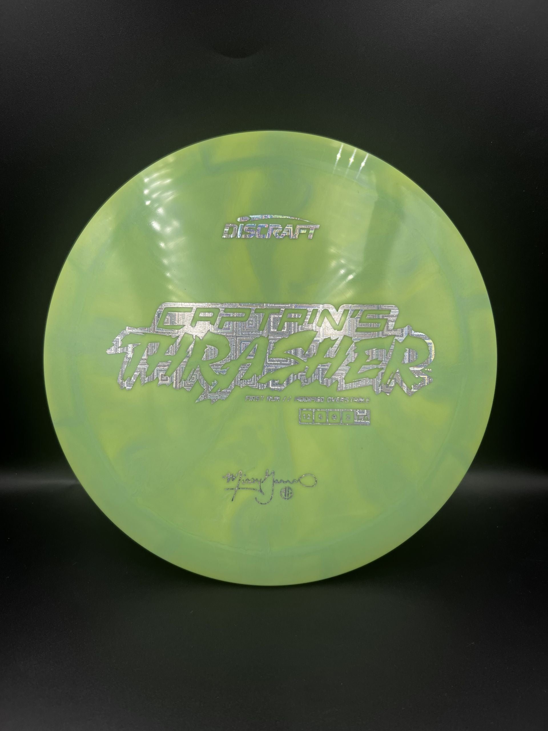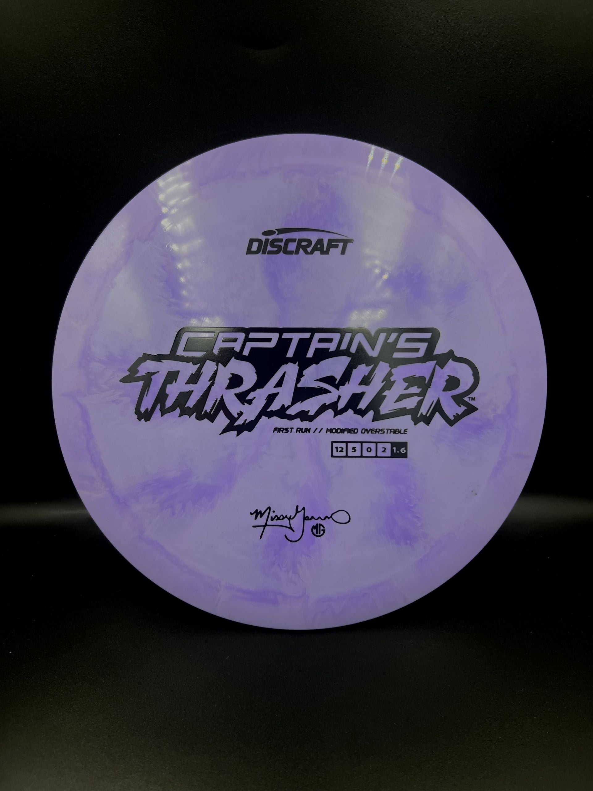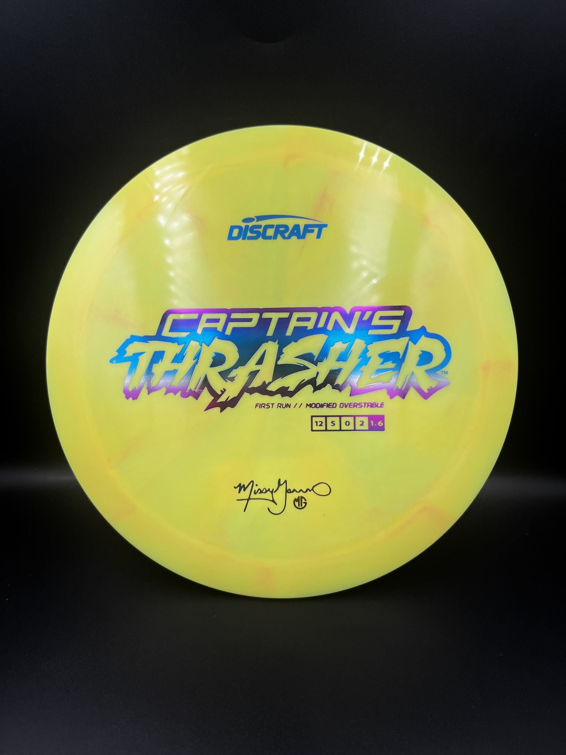 Discraft Captains Thrasher is a modified overstable version of the regular Thrasher. This is a special Missy Gannon release.