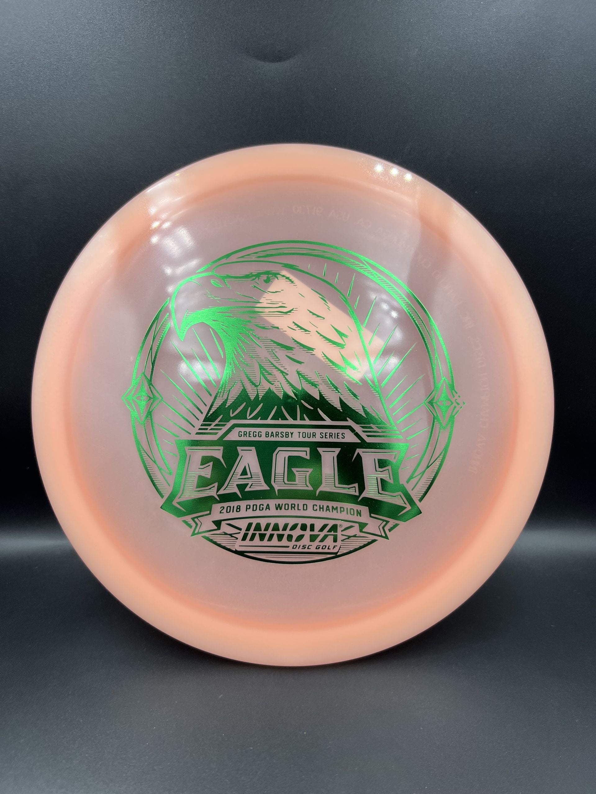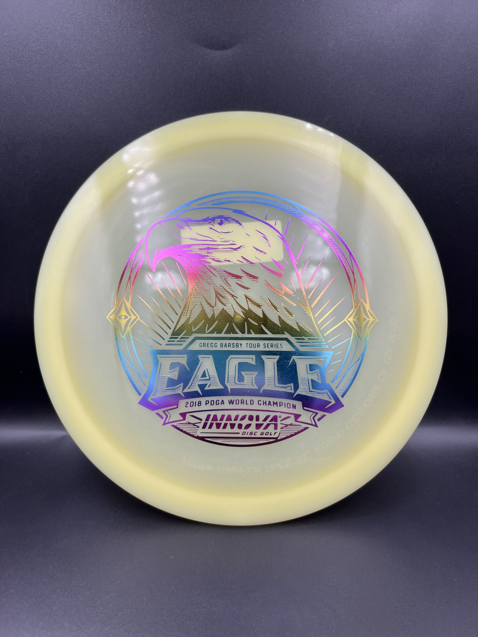The Eagle has landed in Proto Glow Champion plastic. For his 2025 Tour Series disc, World Champ Gregg Barsby paired his go-to mold with our brightest glow material yet. Featuring a stamp as proud and majestic as the bird itself.